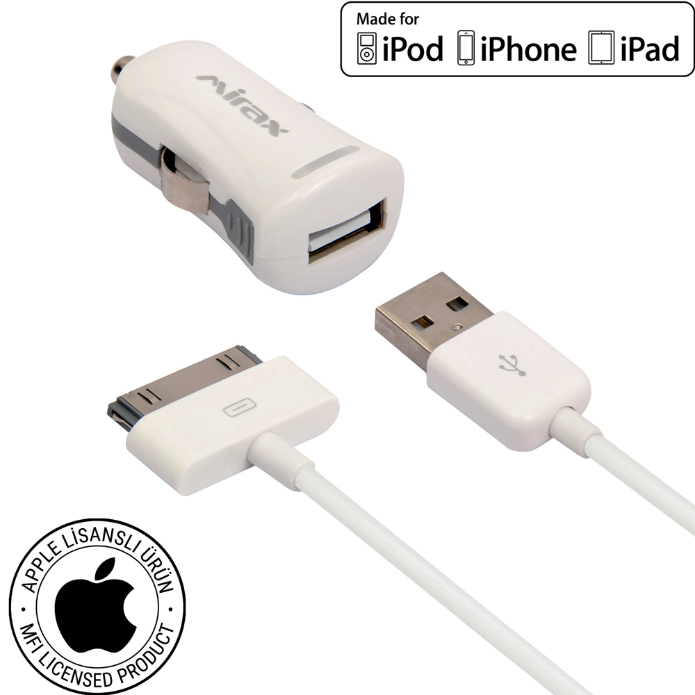 iOS cihazlarınızı USB portu üzerinden şarj edebilir veya güç çıkışına bağlanan